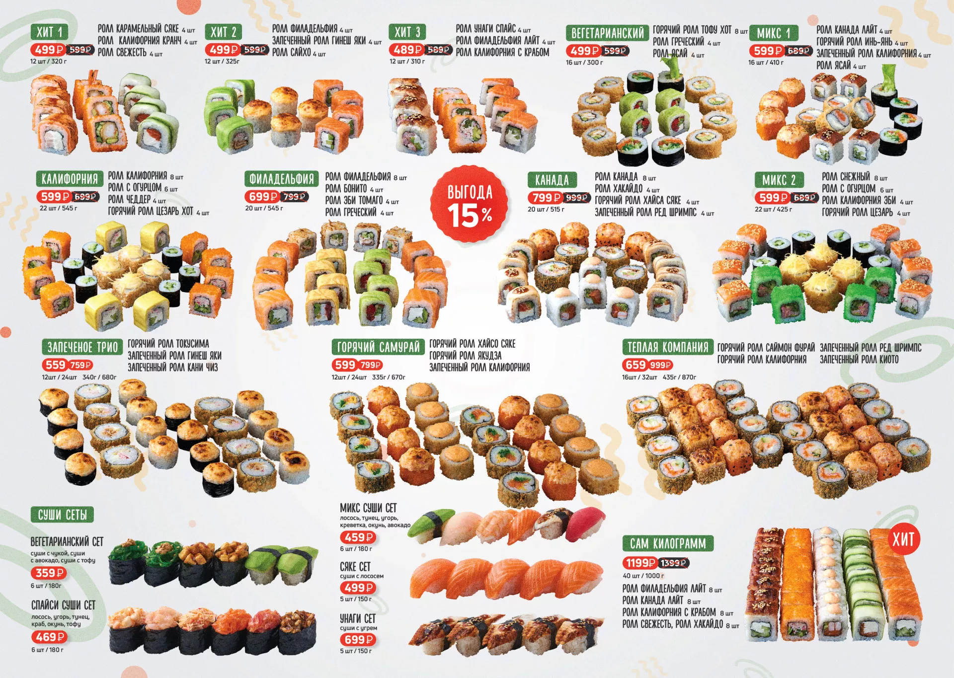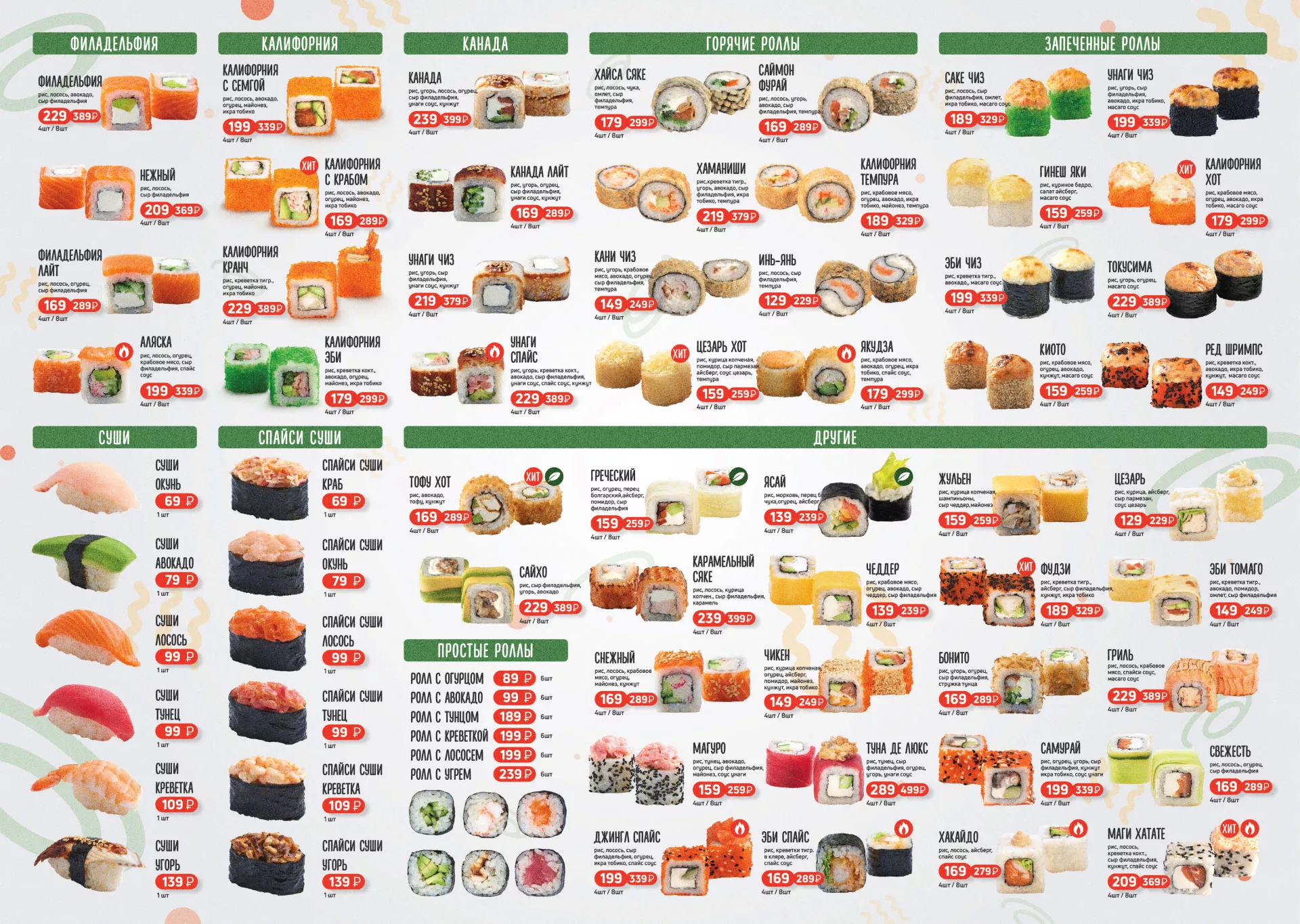 Оформление меню суши-бара «Roll Wok Club» в Кандалакше
