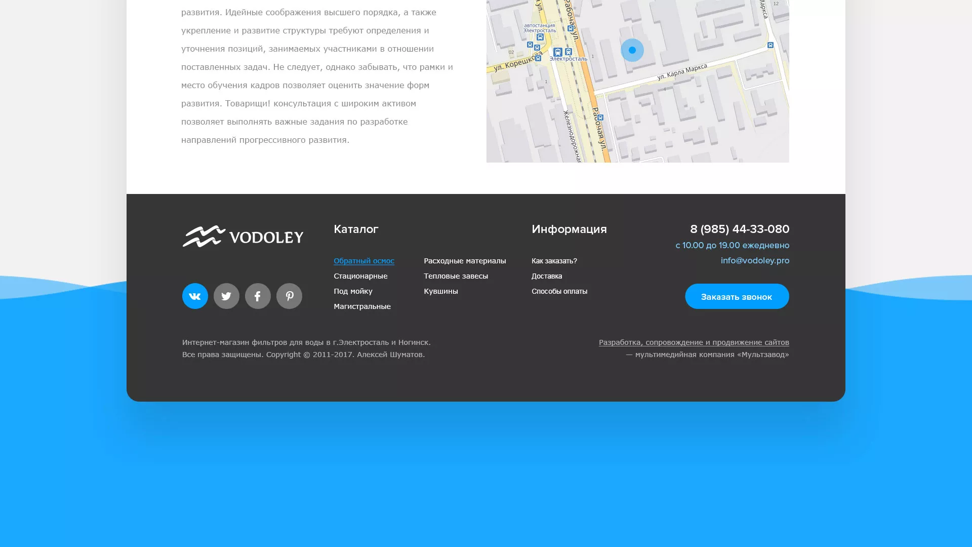Работать с компанией «Мультзавод» удобно и легко, поэтому, если Вам требуется создание аналогичного сайта по продаже и установке фильтров очистных сооружений в Кандалакше, мы предложим Вам действительно выгодные цены и удобные условия сотрудничества. Мы обещаем, что вложенные в разработку сайта деньги окупятся и Вы получите современный рабочий интернет-магазин!
